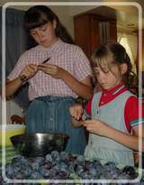 In 2005 we got the most bountiful plum harvest I can remember. (This year we didn't get any.) All three of our 'canning' plum trees bore abundantly. Canning plums are not very good to eat fresh so we can all of ours. We get plums so rarely and in such small quantities (usually) that they are a real treat when we do have them.